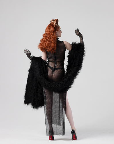 Behind the Design:This year is my final FPA collection as a Senior wrapping up my Marketing and Fashion Retail Studies majors at The Ohio State University. My design inspiration comes from the transformational power that clothing has, especially within nightlife and drag. I’ve also found a code of mine in the contrast between sharp and soft elements. Diverging from my usual love of color, I found Ferrofluid to be my main inspiration for this collection because of said contrast- its shining black form changing with magnetism to look almost alien-like. I also wanted to play with fabrics that catch light in unique ways to simulate the wetness of the chemical compound. The emotions put into the making of these pieces were strong, and I feel really proud of the finished results.